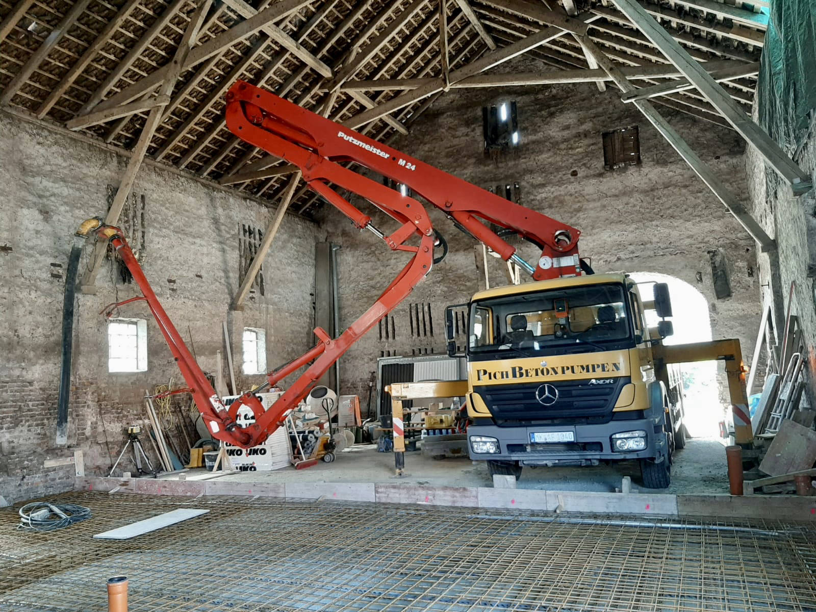 Mit derzeit fünf Fahrzeugen und einer Mastlänge von 24 - 58m fördern wir den Beton punktgenau an seinen Bestimmungsort.